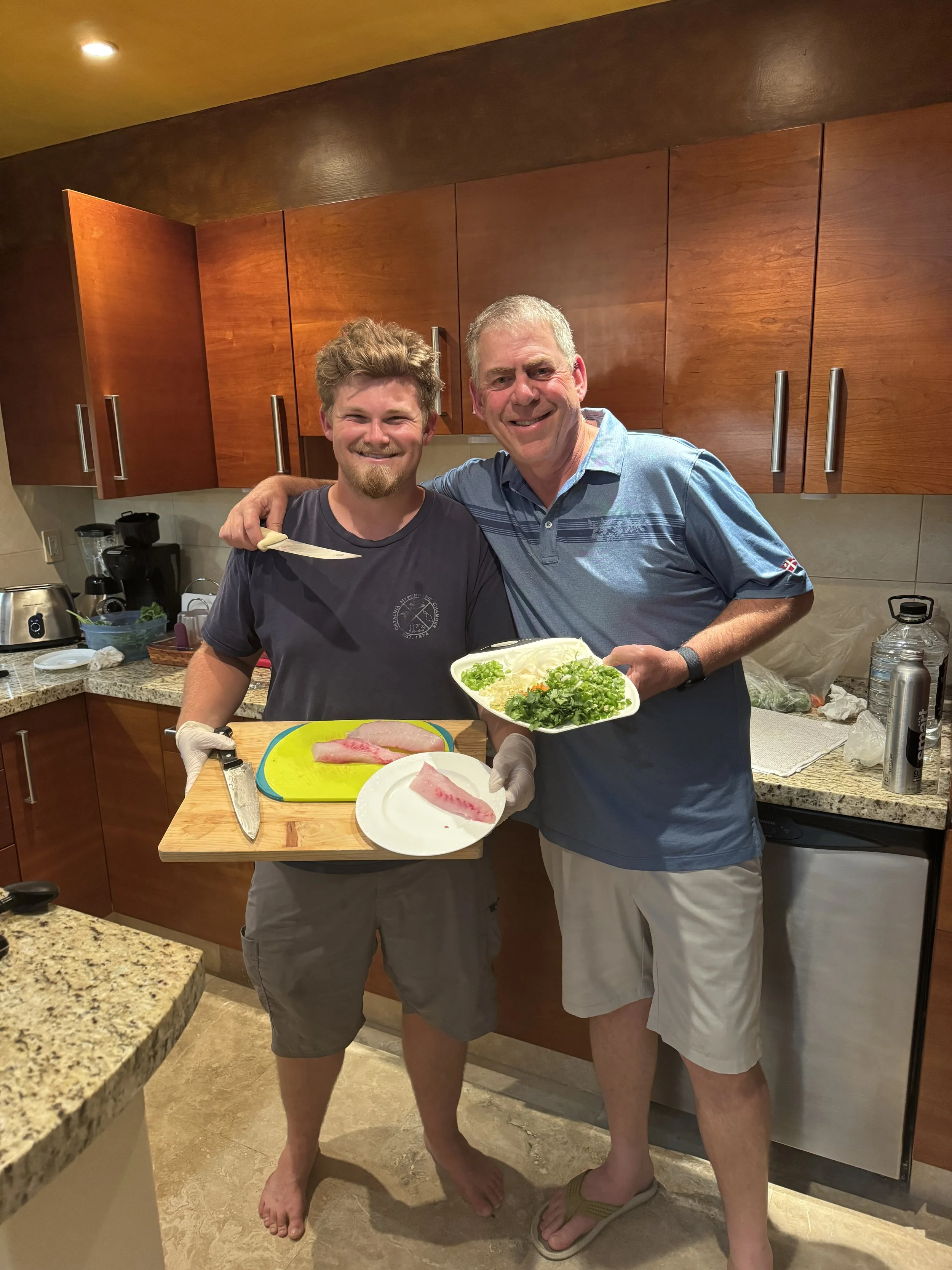 On the return trip, light sprinkles began to fall—soon becoming legitimate rain. Once back in the harbor, we made our way to the Heimlichs’ condo at Costa Baja for glorious hot showers and a little downtime. Chris then treated Dylan to a hands-on master class in ceviche preparation, and we happily enjoyed the delicious results.