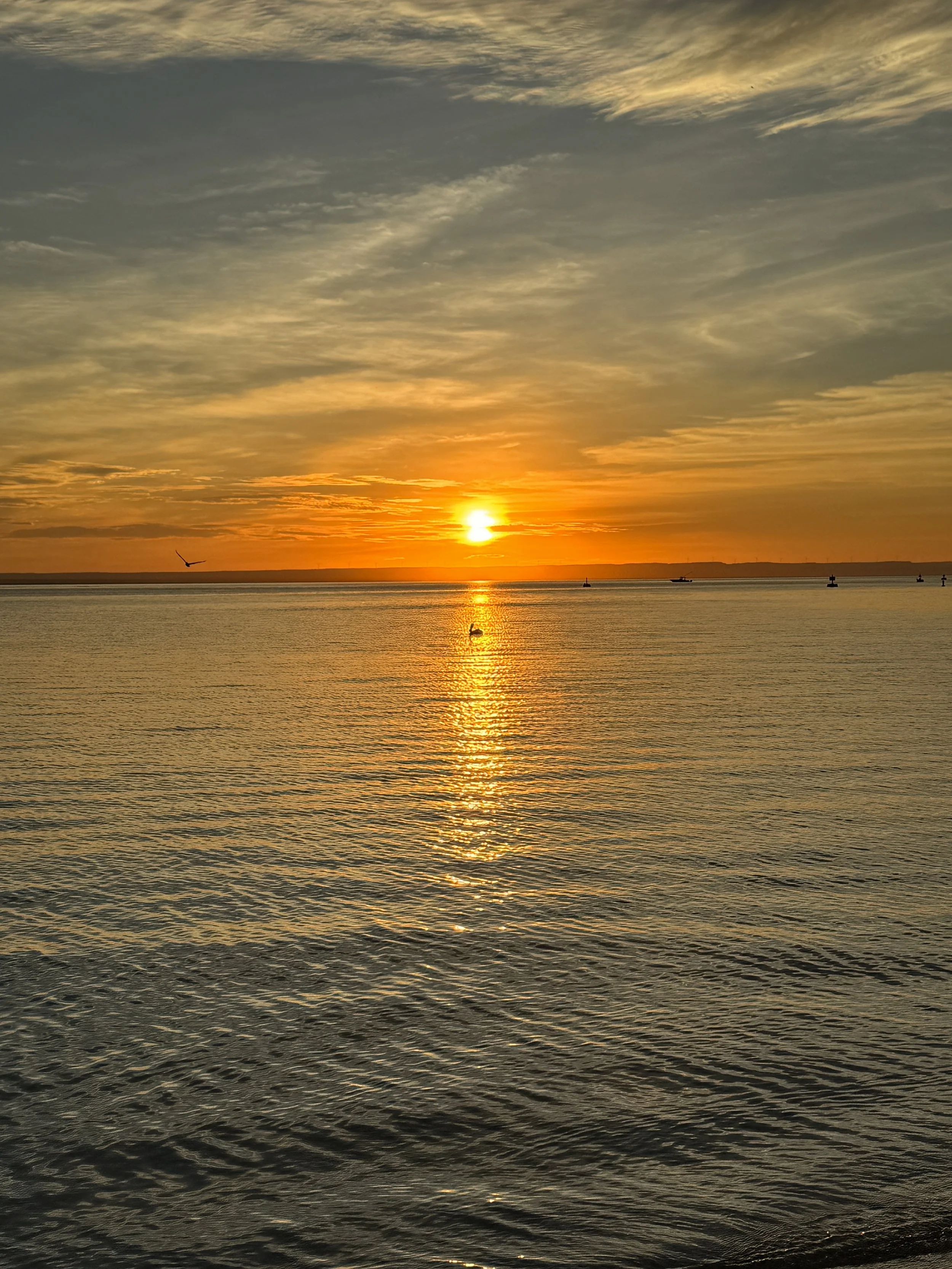Knowing we’d gain an hour when crossing into Puerto Vallarta’s time zone, we sleepily departed Los Frailes at 6:15 a.m. - a full hour earlier than planned. Our reward for the groggy start was magnificent: a brilliant vermilion sky, cirrostratus clouds painted like watercolors, and an awe-inspiring sunrise. Dylan received an extra gift when he spotted a whale breaching in the distance, its silhouette briefly etched against the glowing morning sky.