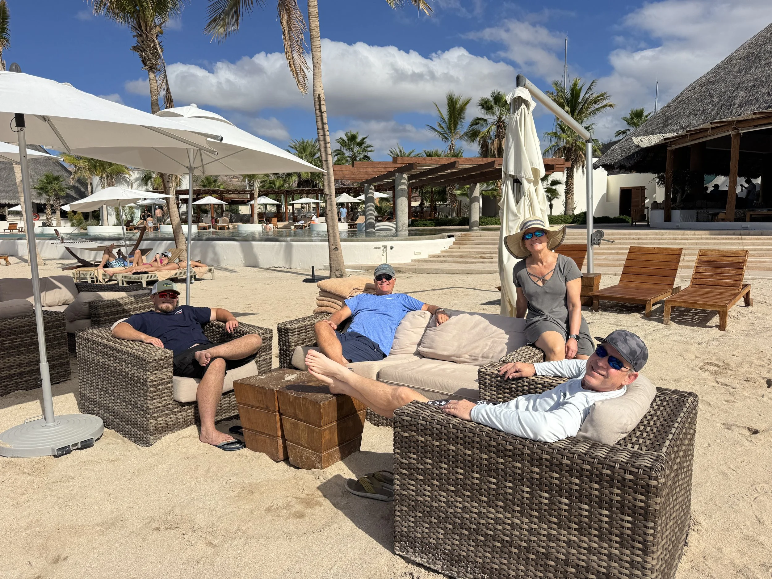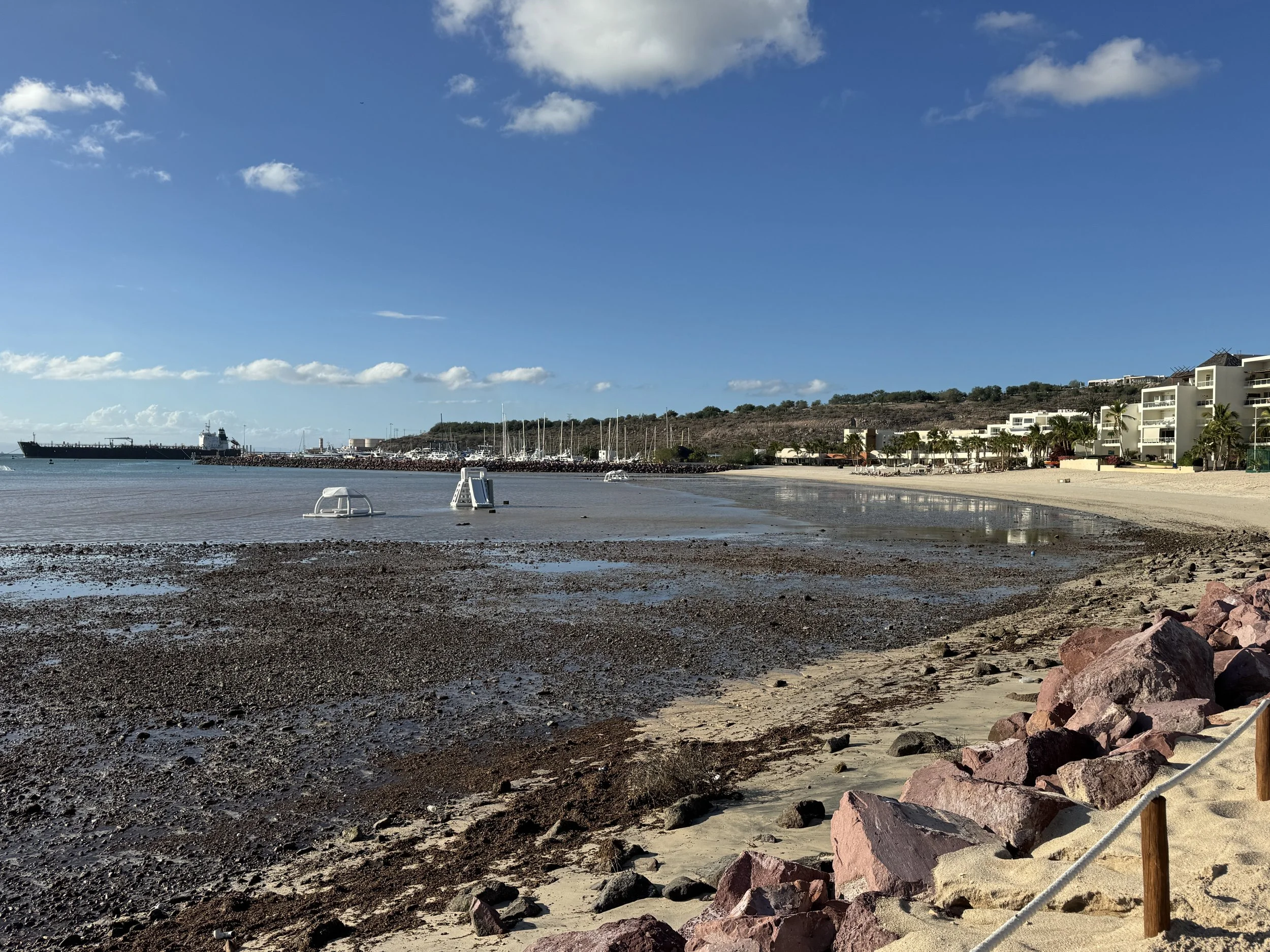 Costabaja did not disappoint. The day was radiant, with sunny skies, a gentle breeze, and unusually low tides caused by the King Tide phenomenon, leaving vast stretches of sand exposed. We spent the afternoon drifting between plush couches and the inviting pool, savoring a delicious lunch, sipping cool drinks, and enjoying our conversations. Each of us seemed quietly aware of how special these moments were.