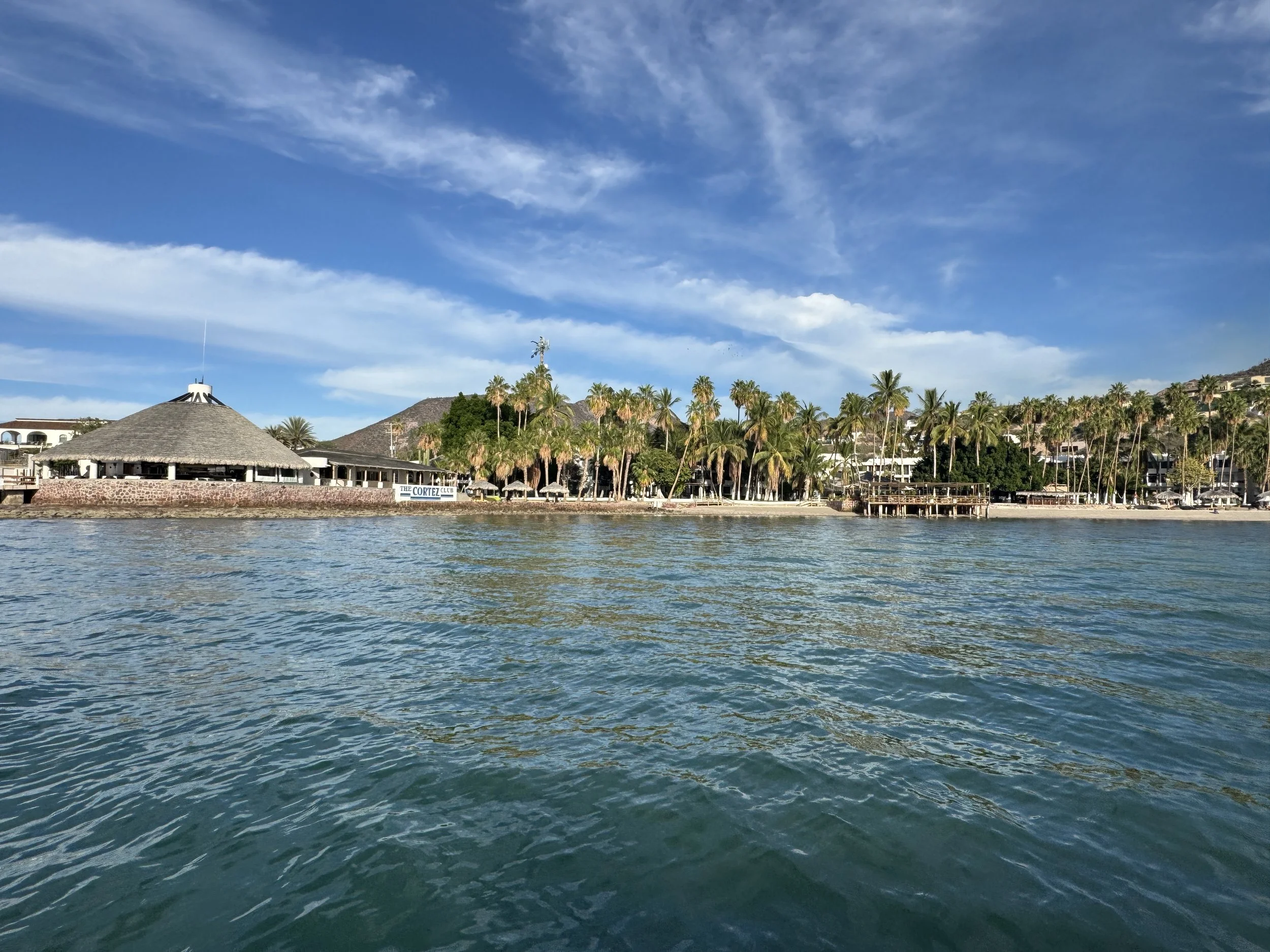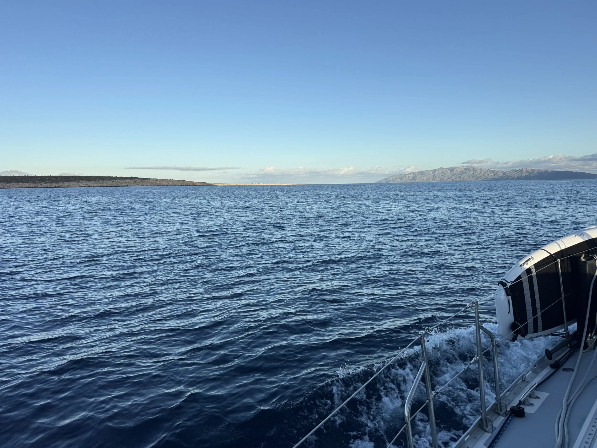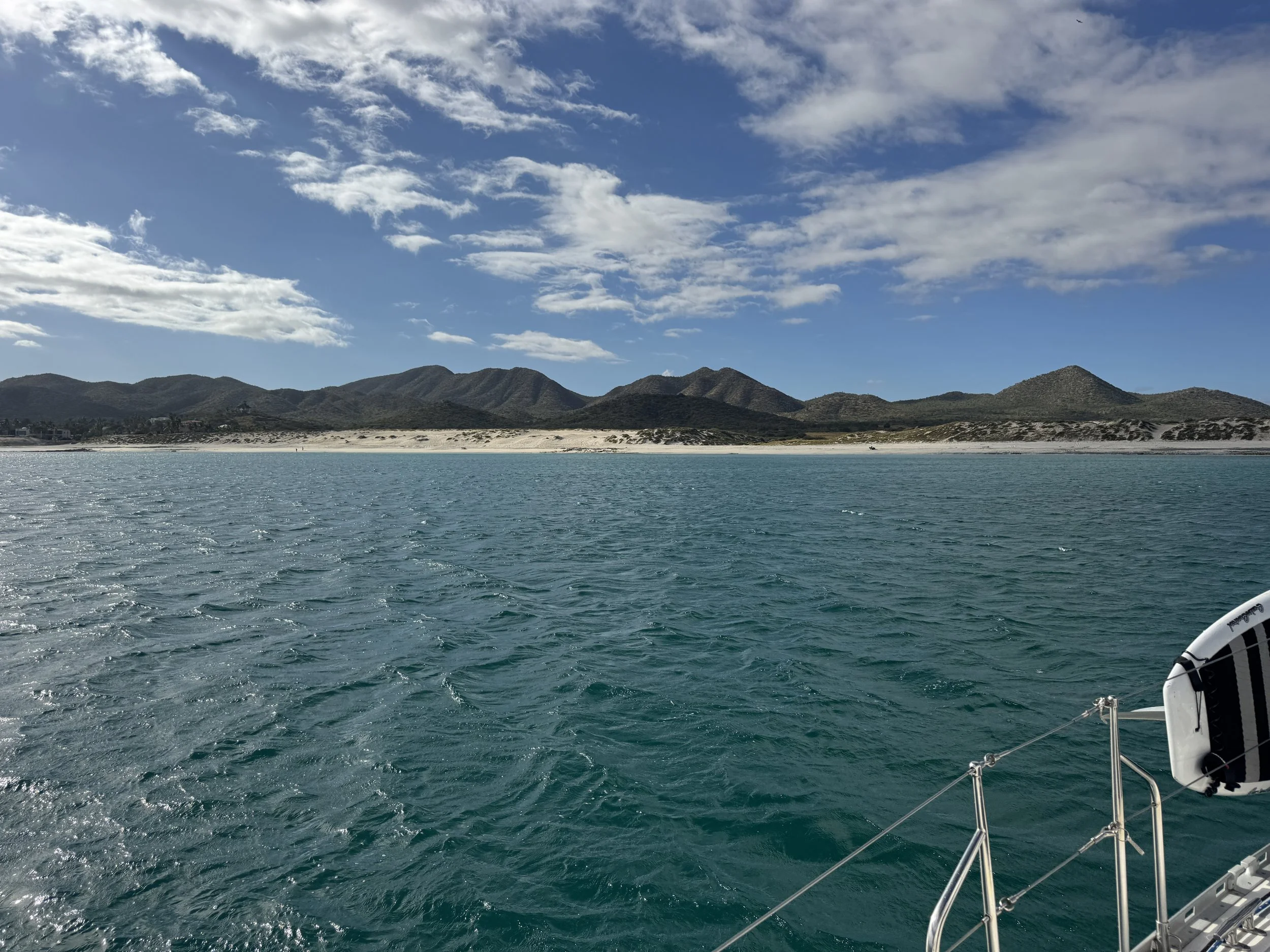 We were underway by 8 a.m., hearts full and tinged with some sadness as we bid farewell to the La Paz Port Captain and the city that had become our temporary home. As we motored past Chris and Barb’s condo, we saw them out on their deck where they captured a video of our departure. A perfect sendoff.