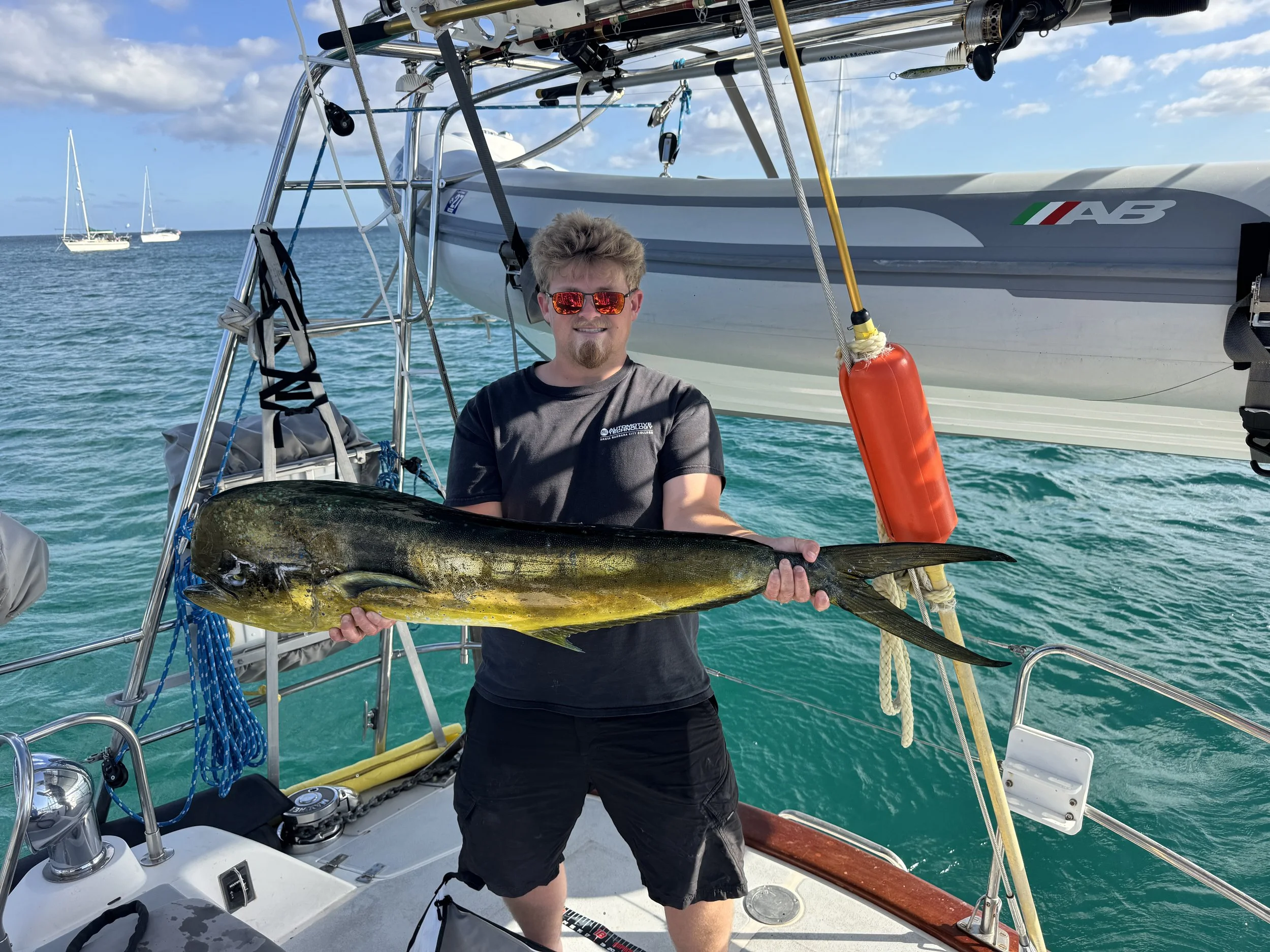 Dylan’s departure was far from ideal. The heat was intense, and he had multiple bags to manage, including a cooler filled with fish. Still, after 44 unforgettable days together, we shared hurried goodbyes and watched as Dylan closed his chapter of this journey. He has been instrumental to our success on this trip, and we know that operating Nirvana will be more challenging for John and me without his capable help.