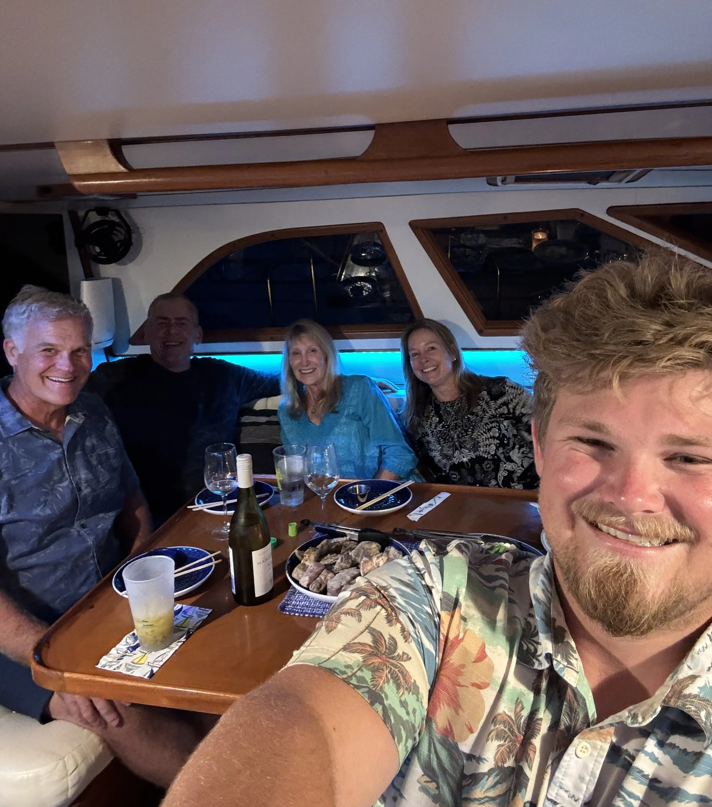 In the evening, we shared dinner with our new friends Mark and Tomo, from the sailboat MamaLu. Dylan and Colleen met them in San Diego Harbor when the prop on their boat was wrapped, and they were struggling to avoid a collision course with a cruise ship. Dylan towed them to safety, and soon we became fast friends. We savored the last of our tuna, with hopes there will be more in our future.