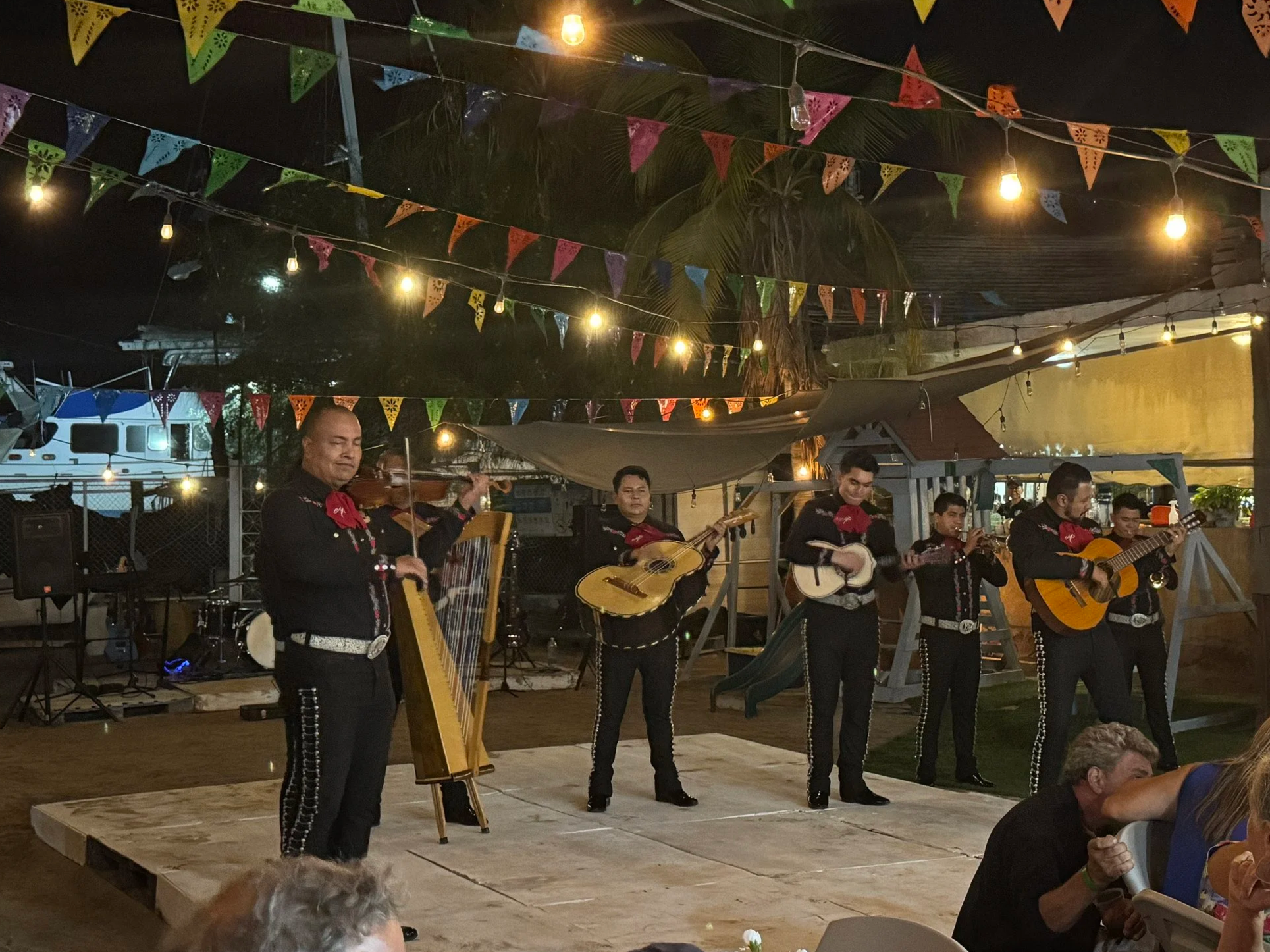 Following the baseball game, we returned to Nirvana. Morgan and Dylan took off for another fishing adventure while John and I relaxed a bit. Upon their return, the boys prepared an amazing and very fresh fish taco dinner with the Calico they caught. We cleaned up and then headed to a neighboring catamaran, Nauti Girl, for an impromptu party. Morgan brought his guitar, providing welcome live entertainment for our fellow Cruisers. Slowly, we are meeting people in the group. We definitely are an eclectic mix of characters, hailing from a variety of backgrounds and experiences, which keeps things interesting!