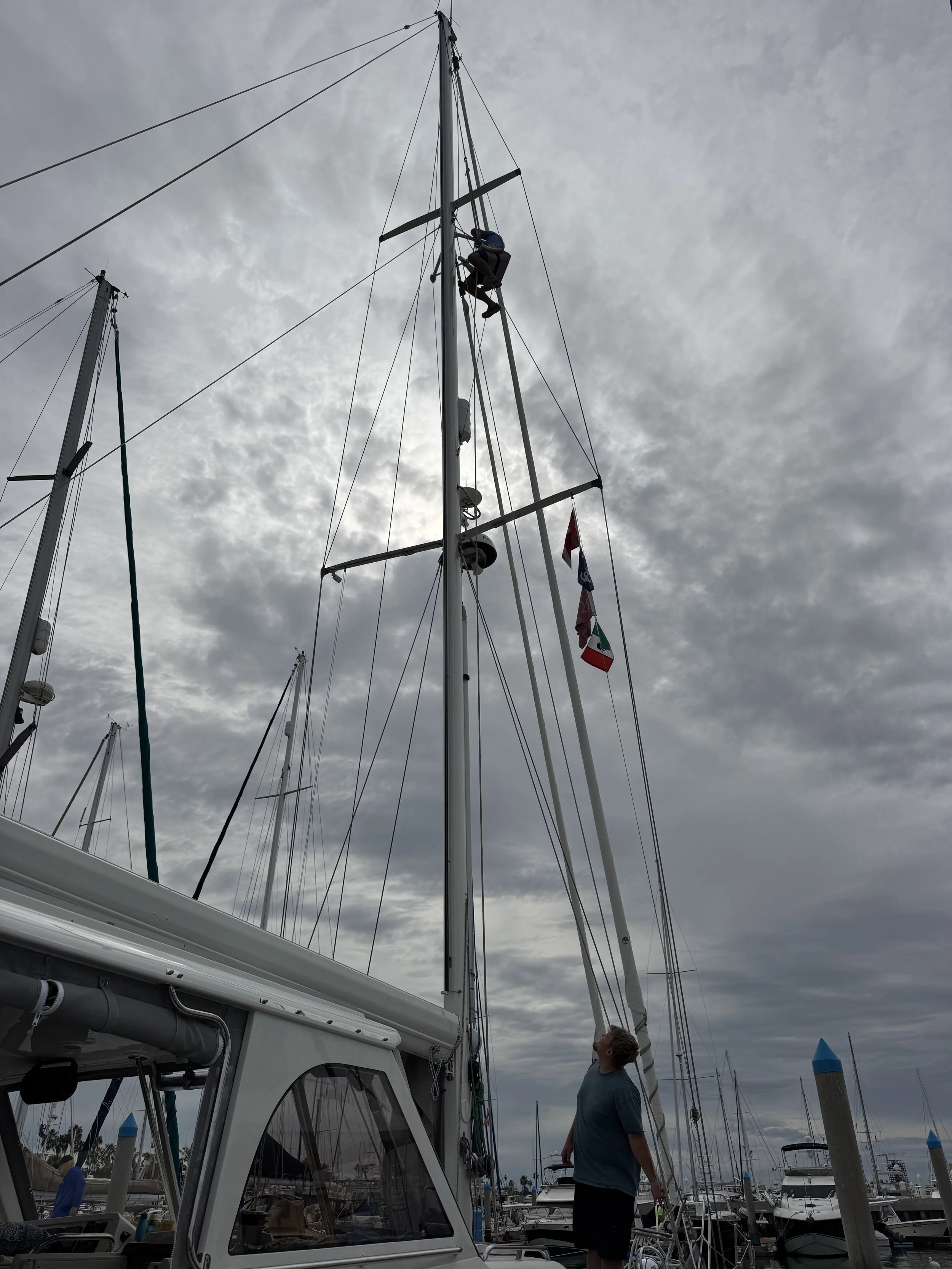 Returning to the fuel dock reinforced the theme of the day: nothing is easy. Two small sailboats with inexperienced captains attempted to cut in front of us, and just moments later a sailboat was launched from a hoist, creating both collision concerns and a noisy backdrop of chaos. Through it all, Dylan remained calm and steady at the helm, guiding us safely through the mess. At last, we were settled in our new home - Slip B13, Marina 3.