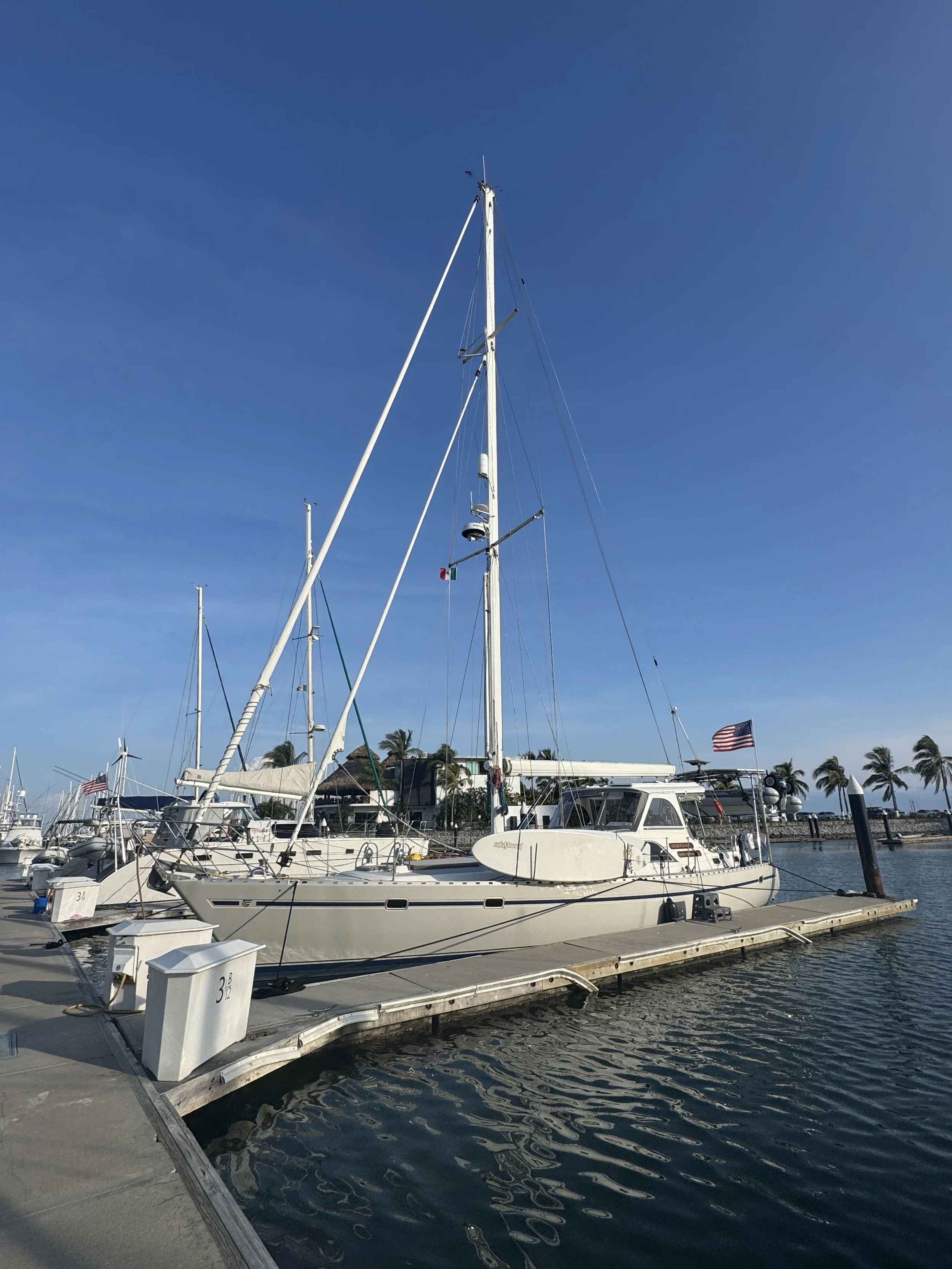 Our next task was fueling and then relocating Nirvana to her new home. As we’ve learned, nothing here is simple—and nearly all coordination happens over the radio. Fuel was no exception. We called in and were told to arrive in 30 minutes, only to find two large yachts already fueling when we got there, which meant more waiting. To make use of the time, we motored over to our new slip to confirm that the power worked. As we approached, a group of teenagers cleaning a neighboring boat rushed over to help with our lines, for which we were truly grateful. We soon learned they were Aaron’s sons and employees—further proof of the genuine kindness we’ve consistently encountered from the local people.